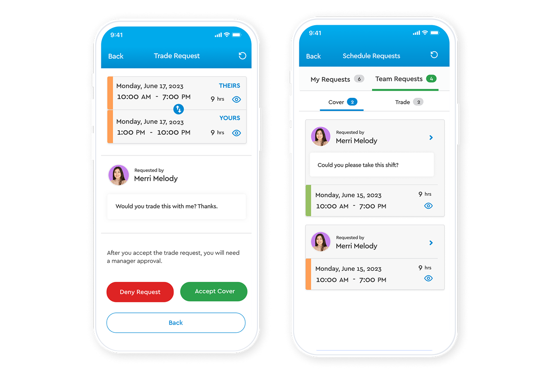 Employees can request time off, view schedules, swap-shifts, and keep track of their day-to-day tasks – all from our mobile app.